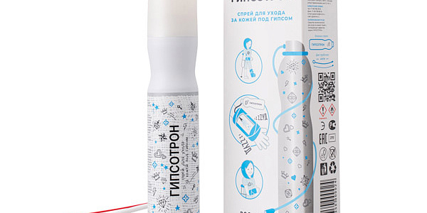 Гипсотрон - спрей для ухода за кожей под гипсом, устраняет неприятный запах, снижает зуд и незначительные раздражения на коже под гипсовыми и полимерными повязками.