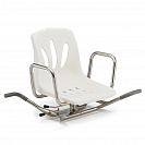 Сиденье изготовлено из высокопрочного пластика, который легко поддерживать в чистоте, а специально продуманная перфорация не задерживает смываемую с тела воду на поверхности кресла. Наличие поворотного механизма облегчит процесс усаживания, а трубчатый алюминиевый каркас не подвержен коррозии под воздействием воды.