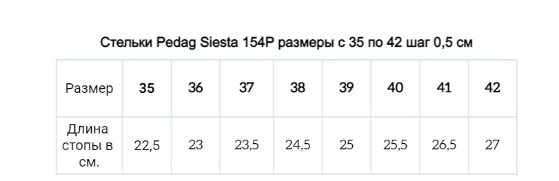 Стельки ортопедические Pedag Siesta 154P в наличии. Узнайте, как купить товар с бесплатной доставкой в Биробиджан, Облучье, Николаевку, Ленинское и другие населенные пункты Еврейского АО на странице «Доставка».